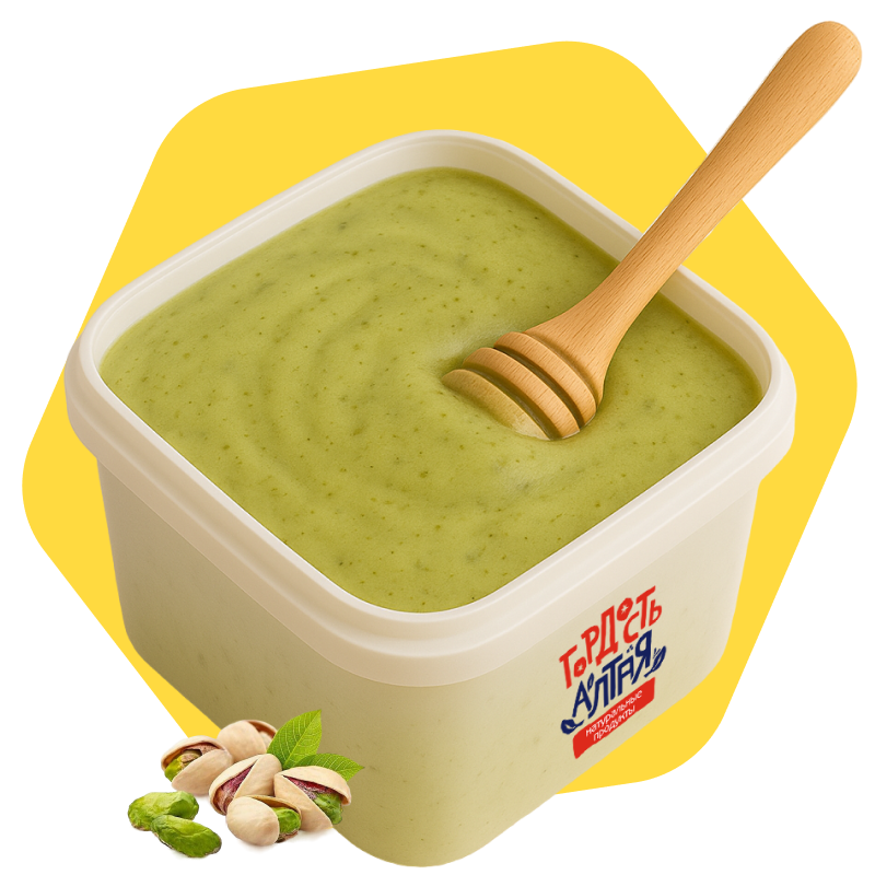 Крем-мёд «Фисташка» ПОД ЗАКАЗ — это изысканный десерт на основе алтайского цветочного мёда с натуральной ореховой добавкой. В составе — только мёд и фисташка: сублимированная, молотая или в виде пасты (в зависимости от партии). Благодаря технологии холодного взбивания крем-мёд приобретает мягкую, стабильную текстуру и нежный орехово-медовый вкус.