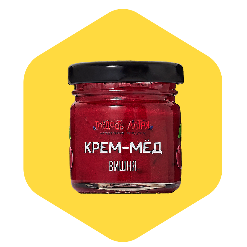 Крем-мёд с вишней — это натуральный десерт с ярким ягодным вкусом и лёгкой фруктовой кислинкой. В основе — цветочный мёд из Алтая, взбитый до кремовой текстуры. В состав добавляется натуральная вишня: в виде кусочков, лиофилизированной ягоды или ягодного пюре. Благодаря этому мёд приобретает насыщенный тёмно-вишнёвый оттенок, выраженный вкус и лёгкий аромат спелой ягоды. Крем-мёд с вишней — это одновременно и вкусный десерт, и источник природной пользы. Он не содержит сахара, красителей, ароматизаторов или консервантов, легко намазывается, не течёт, долго сохраняет консистенцию.